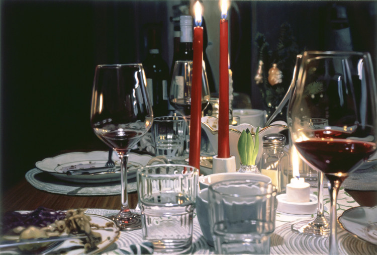 Stilleben mit roten Kerzen